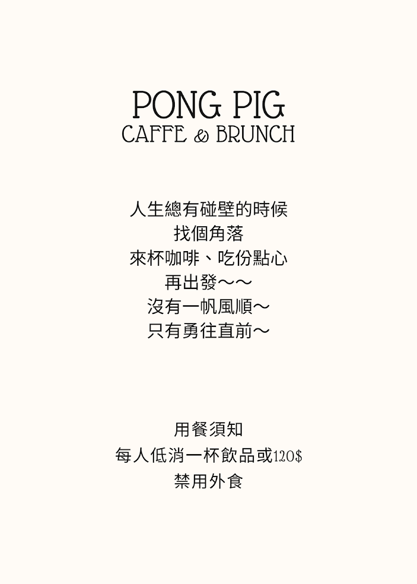PongPig's menu is a delightful mix of creativity and quality. Among the standout dishes is the 跳嘴紅蝦三明治 (Jumping Shrimp Sandwich), priced at NT$280. This sandwich is not just a meal; it's an experience, with perfectly balanced fillings that play on texture and flavor. Customers rave about the 酥皮牛肉捲 (Puff Pastry Beef Roll), which many describe as reminiscent of a high-end steakhouse dish yet served in a brunch setting—definitely not something you find at your typical café! For those with lighter preferences, the 煙燻鮭魚沙拉 (Smoked Salmon Salad) provides a fresh and fulfilling option, featuring crisp greens drizzled with house-made vinaigrette.